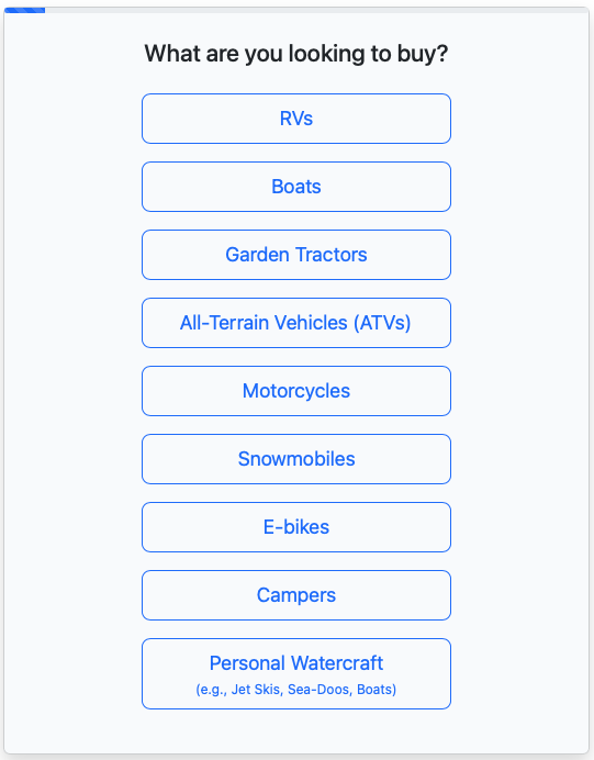 ✅ Quick Online Application ✅ All Credit Types Accepted ✅ Low Interest Rates Available ✅ Financing for ATVs, RVs, Dirt Bikes, Side-by-Sides, Snowmobiles & More